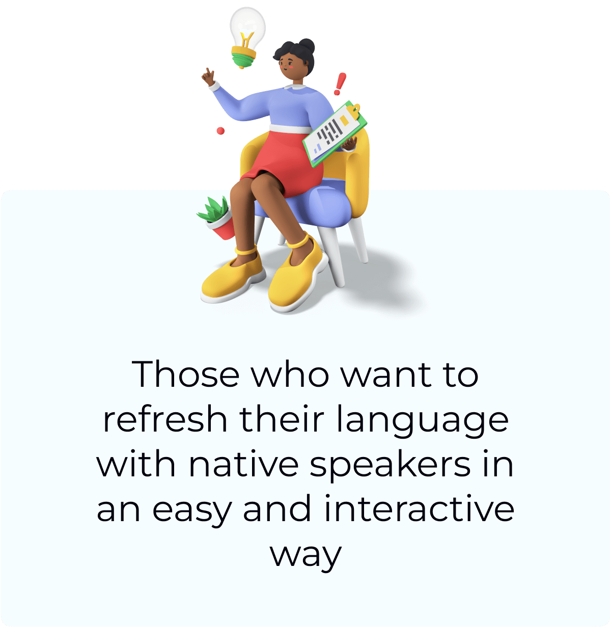 You don't learn theory or do exercises — you just chat and practice your spoken language skills